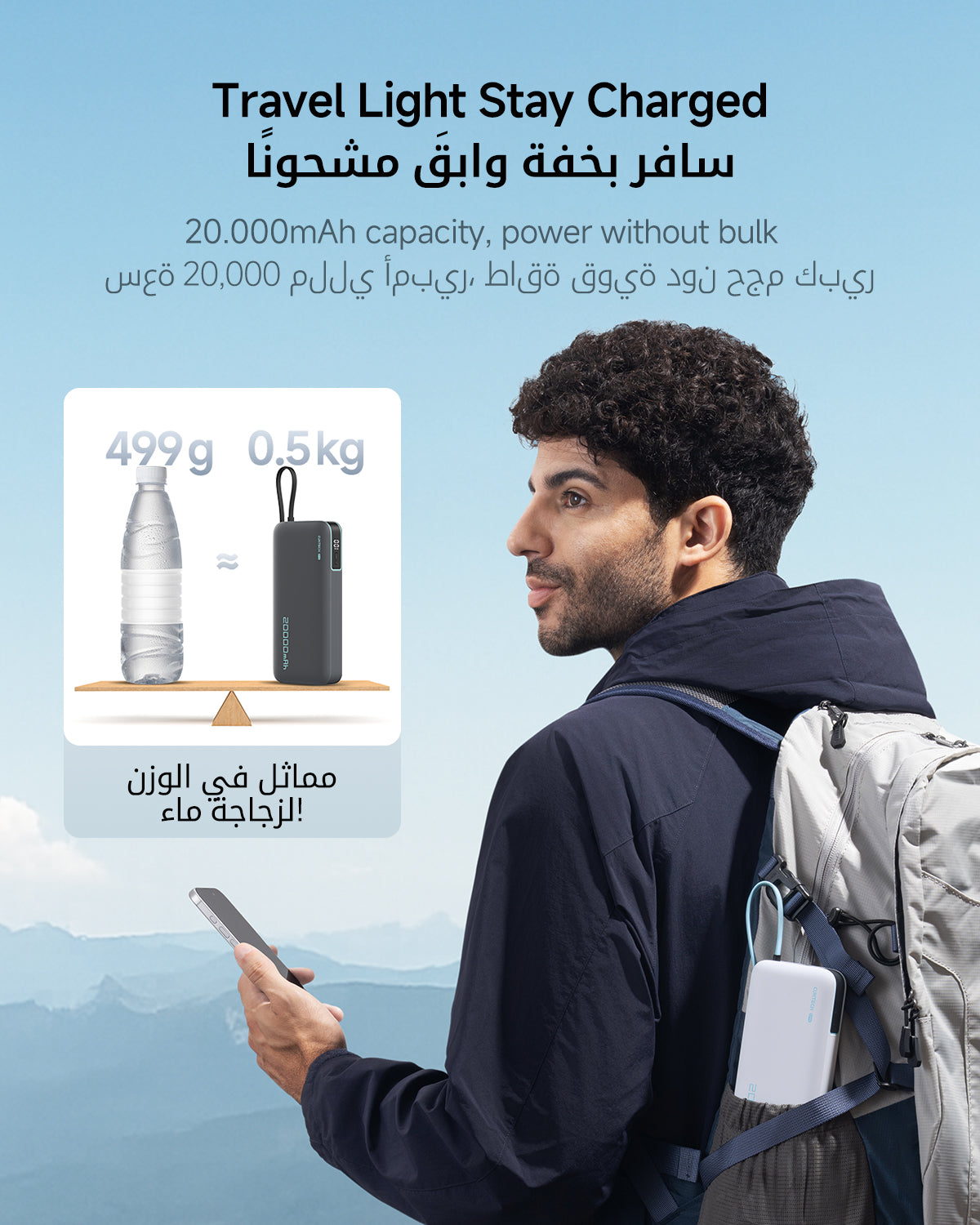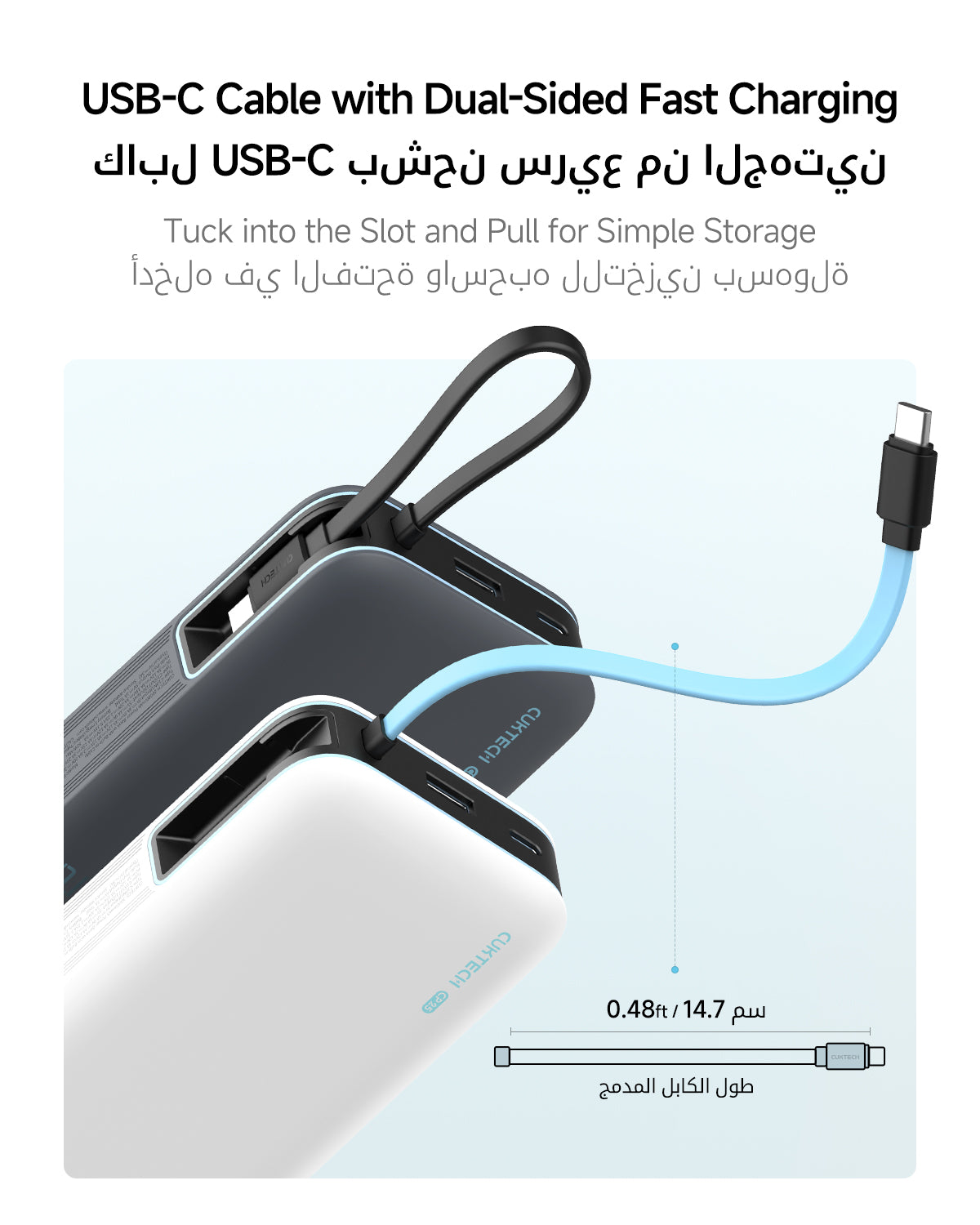 Built-in USB-C Cable of 45W Output for Convenience : Say goodbye to tangled cables with the built-in USB-C cable, providing 45W fast charging directly from the power bank. This durable cable is tested to withstand over 10,000 uses and doubles as a convenient carrying strap, making this portable battery pack the ideal travel companion for your backpack or pocket.
