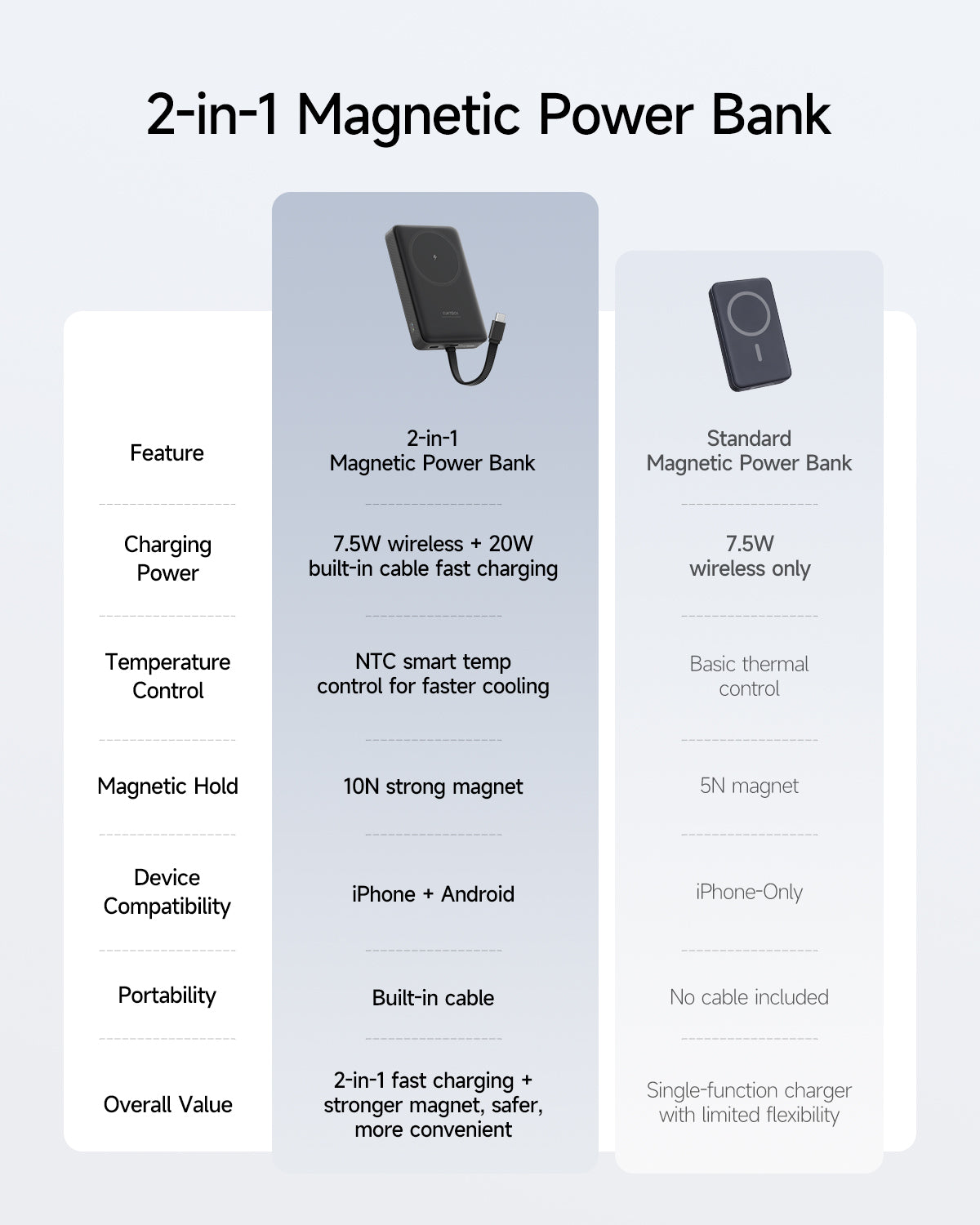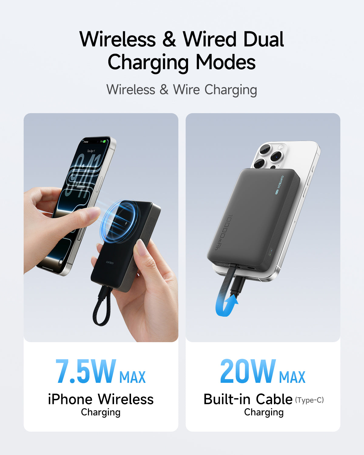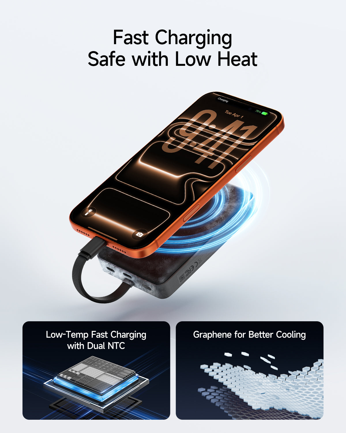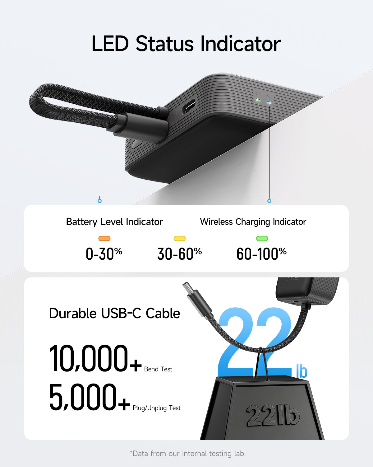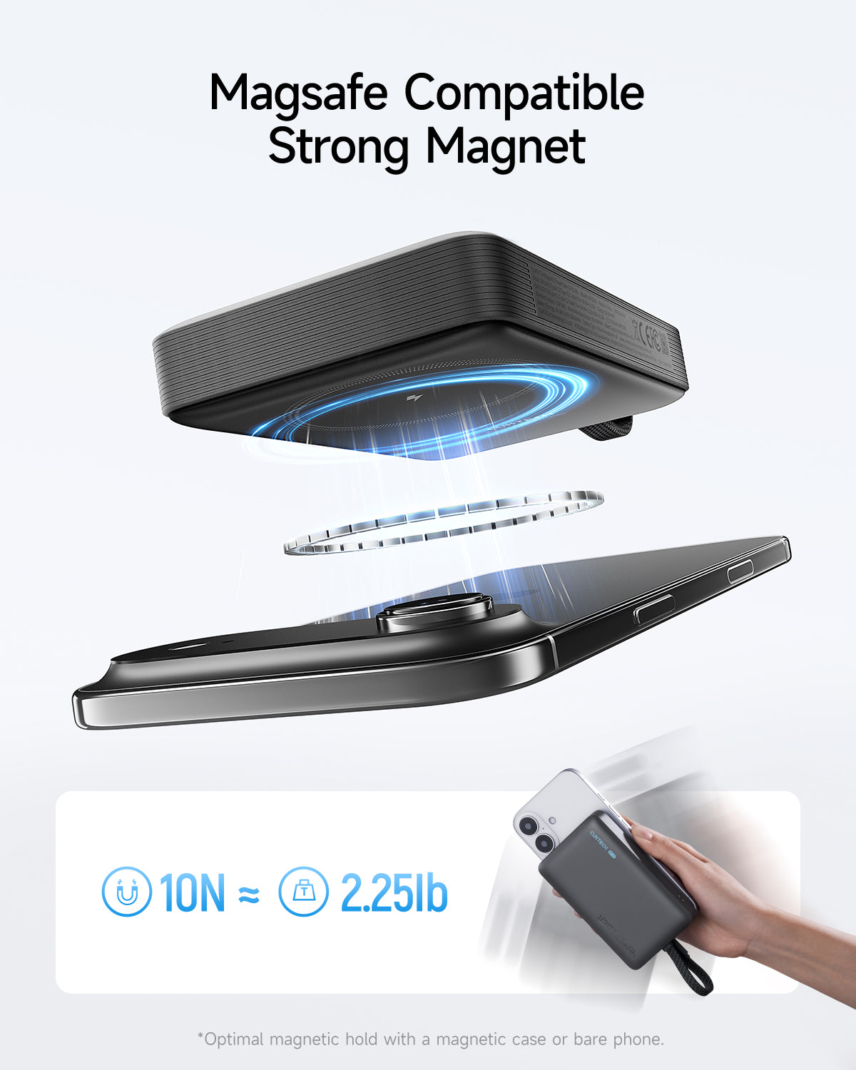 ALL-IN-ONE WITH MAGNETIC & BUILT-IN CABLE: Charge any device anytime, anywhere with the built-in USB-C cable - perfect for iPhones and USB-C devices. No more tangled cables and forgotten cables on the go.