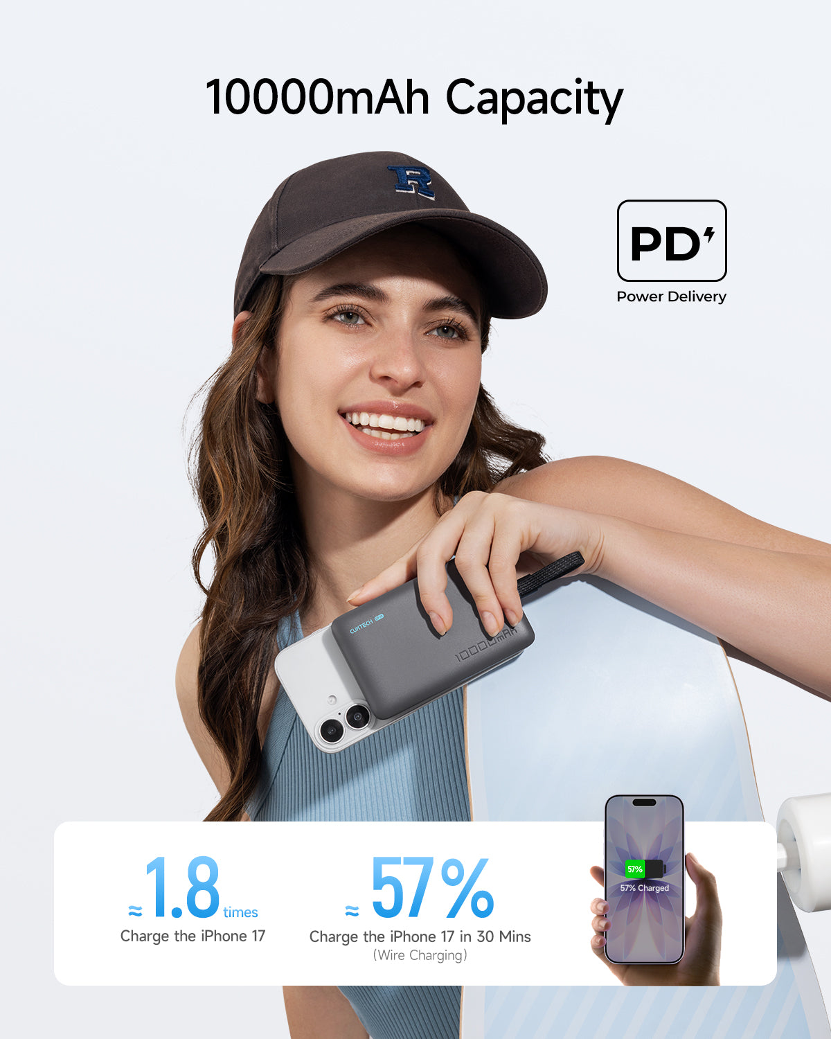 ENERGY THAT LASTS ALL DAY Stay connected longer with a high capacity 10,000mAh battery - enough to charge your iPhone 16 up to 1.8 times. Ideal for work, travel or full days on the go.